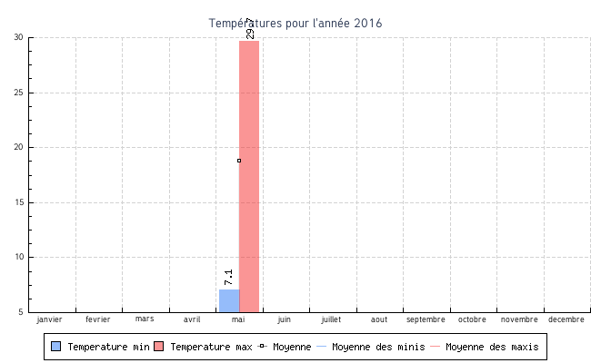 | mai | 7.1 °C | 16.8 °C | 29.7 °C | 20.5 °C | 18.8 °C | 4.8 km/h | 27.0 km/h | OSO |